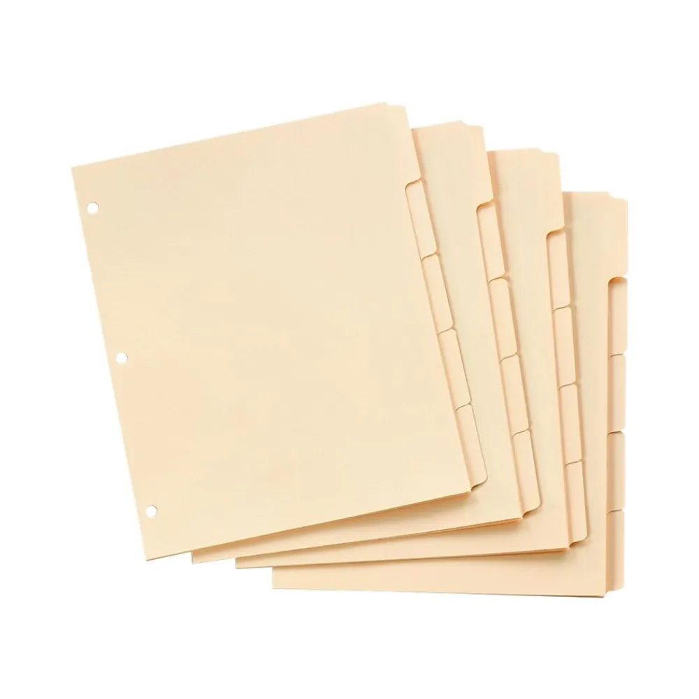 - Five tab dividers per set, 20 sets per box, 100 total tab dividers per box