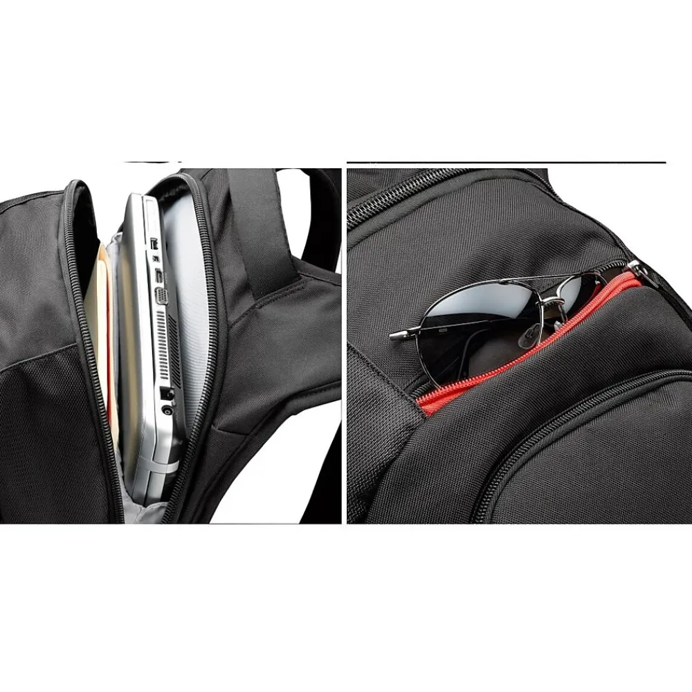 - An integrated laptop compartment holds laptops with screens up to 16 inches