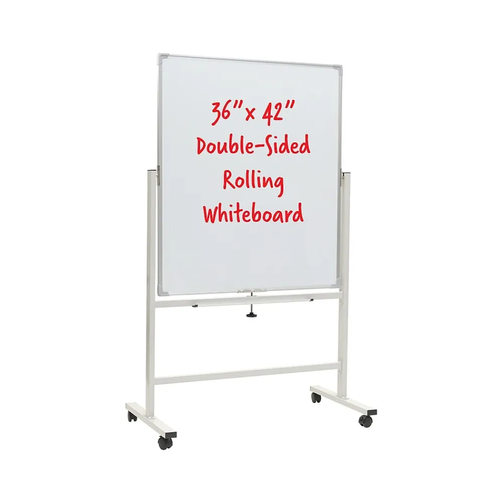- Four wheels allow the whiteboard to move easily, or they can be locked to prevent movement
