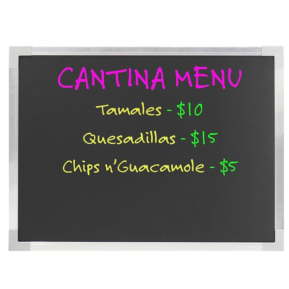 This Flipside blackboard comes with a dry-erase surface. Neon dry-erase markers (not included) will write easily, dry quickly, and wipe off clean with a soft cloth or eraser.
