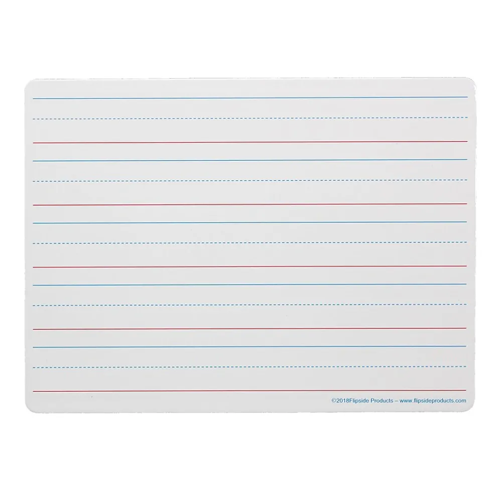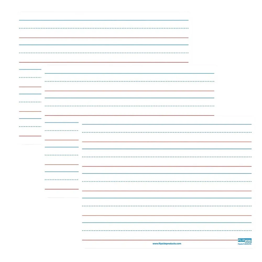 Ideal for teaching and practicing fundamentals for early learners and for use with magnetic manipulatives. Bright white board contains 5 sets of blue headline and broken midline plus red baseline format. Each line set measures 1-1/8″ with 3/8″ of blank descender space between sets. Back side is magnetic, plain, white dry erase. Boards feature a non-ghosting dry erase surface with rounded corners and smooth edges for comfort and safety. Backing is warp and chip resistant. Measure 12″ x 9″ x 0.125″ thick. Pack of 3 Dry Erase Boards.