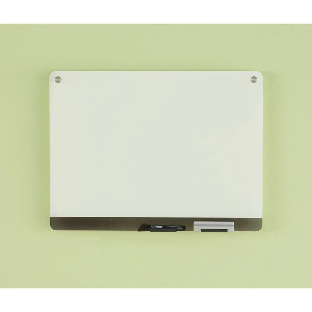 Tempered glass surface and ultra-white backing provide the ultimate high-contrast, non-ghosting, non-staining writing surface. Clarity personal glass dry erase boards are ideal for any environment and easily mount with aluminum brackets, seemingly float ing against the wall with its modern, frameless design.