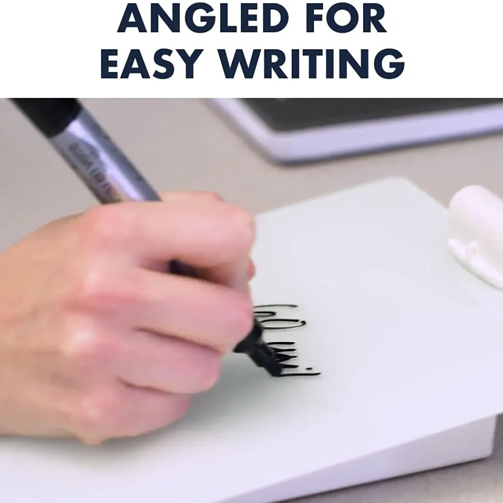 - White glass desktop easel is infinitely reusable and replaces the need for scrap paper