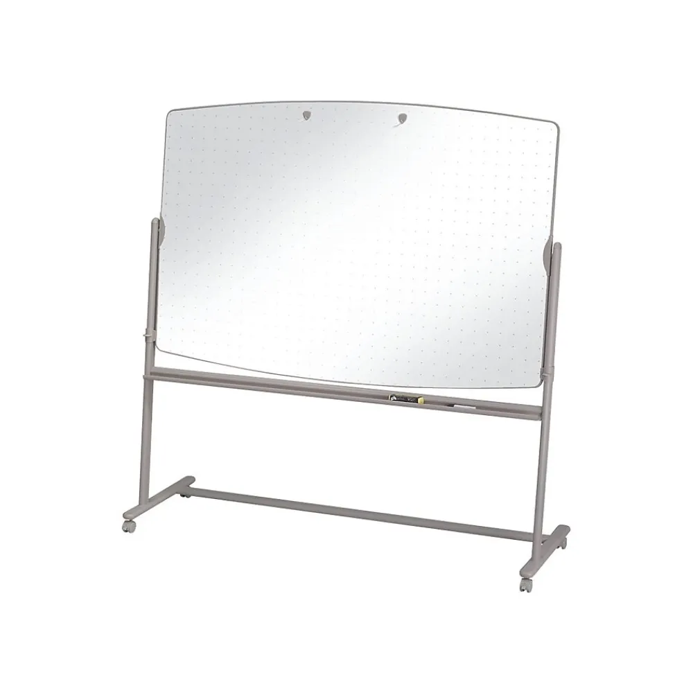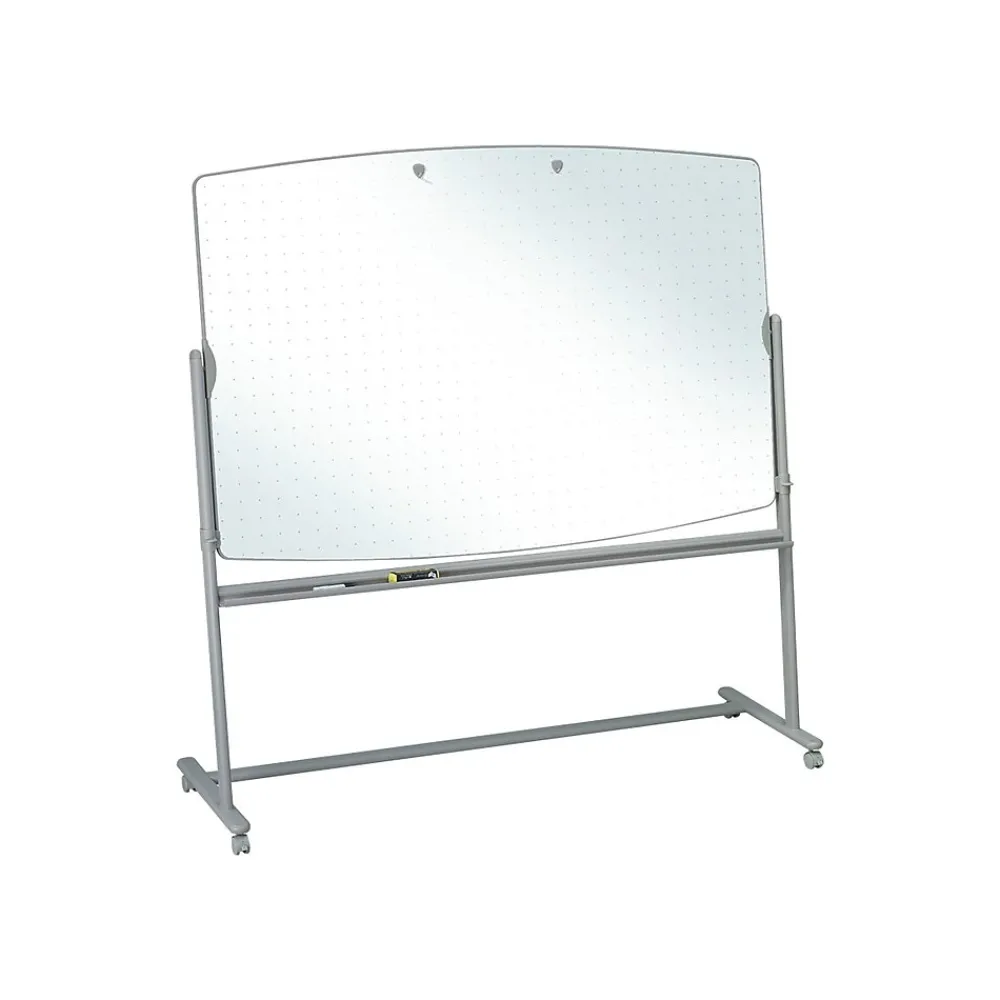 - Large mobile, double-sided vertical whiteboard is perfectly suited for moderate use in spaces with regular traffic