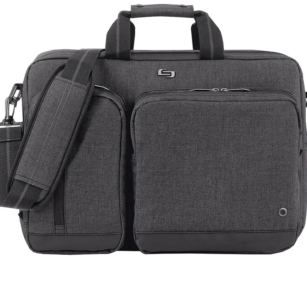 Hybrid Briefcase: This soft-sided briefcase transforms into a stylish backpack or messenger bag. Featuring a padded 15.6″ laptop compartment, internal tablet compartment, large front pocket with organizer section