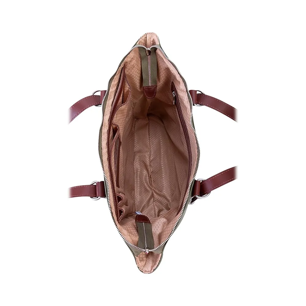 - Adjustable straps convert the bag into a tote, backpack, or cross-body bag