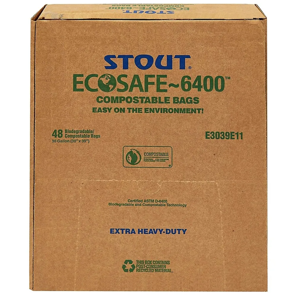 Stout EcoSafe-6400™ Bags, 48 Gallon,.85 Mil, Green, 42″ x 48″, 40/Bx