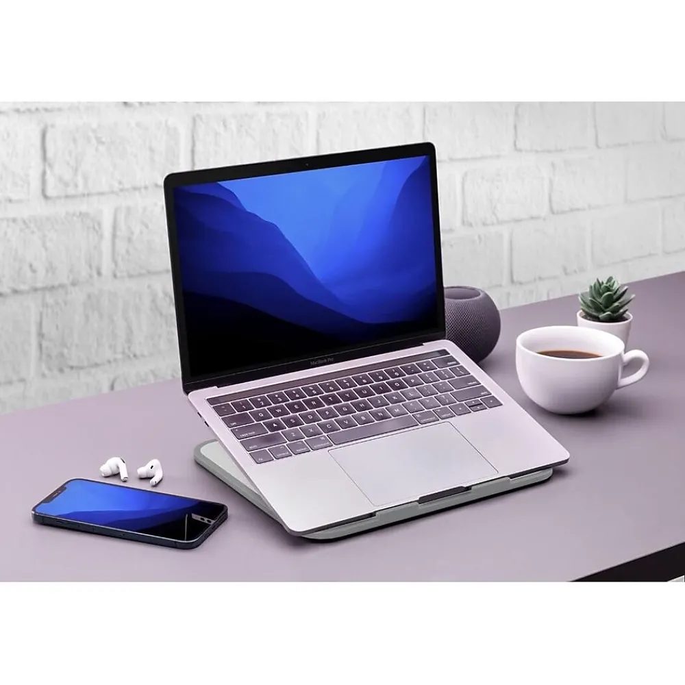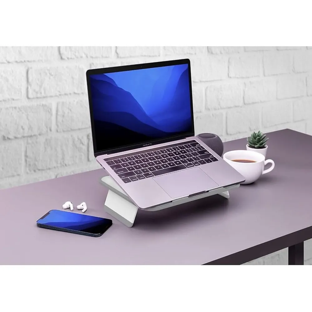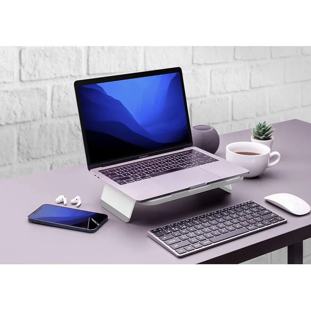 - Slim and compact laptop stand perfect for use at home, office, or on the go
