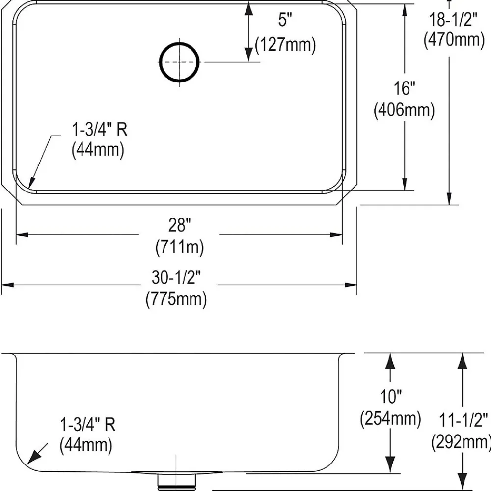 Elkay Lustertone Stainless Steel 30-1/2″ x 18-1/2″ x 10″, Single Bowl Undermount Sink with Perfect Drain ELUH281610PD