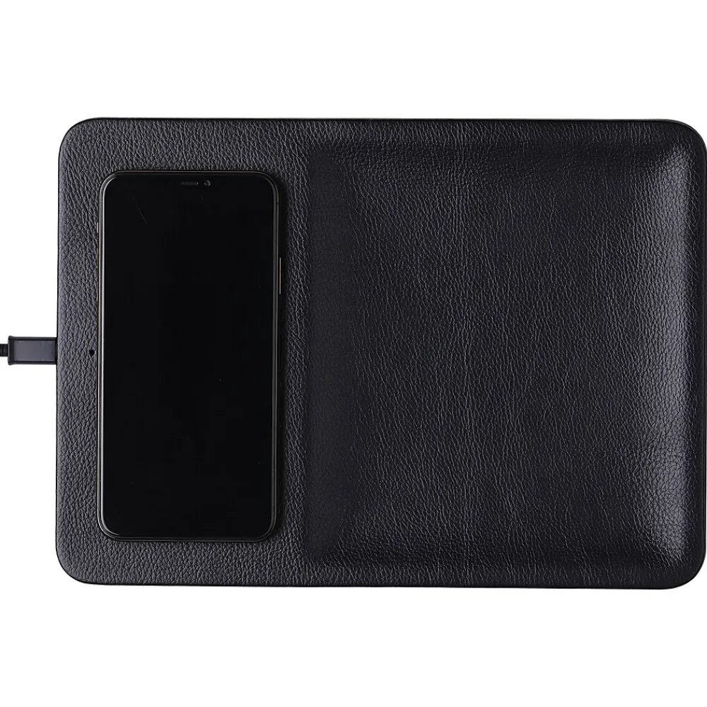 Sleek and sophisticated, this Ellie Rose Black Wireless Charging Tray is the ideal place to rest your smartphone, jewelry, keys, glasses, and other small accessories. Set your phone on the raised side for easy, wireless charging. The rest of the tray serves as a beautiful catch-all to keep your desk tidy and is made of beautiful vegan leather.