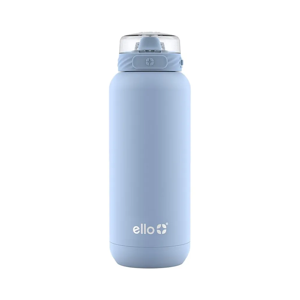The ello Cooper 32 oz. vacuum-insulated stainless steel water bottle features an FDA food-grade silicone straw infused with Guardian that keeps the drink surface clean. A locking, leakproof flip lid with a built-in carry loop keeps the drink surface fully covered during transport. Just push the soft-touch band to flip the lid open with one hand. Cooper keeps drinks cold up to 24 hours and features 18/8 stainless steel with an ultradurable powder coat finish that won’t chip or rust.
