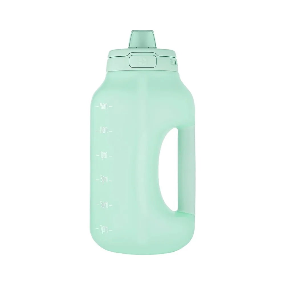 The ello Hydra water bottle with straw includes time markings to remind you when it’s time to drink water throughout the day. The one-touch flip lid keeps the drink surface covered and clean, while the extra-wide opening allows for easy filling, adding ice, and cleaning. Choose between the integrated carry loop or soft-touch handle on the side for easy grab-and-go.