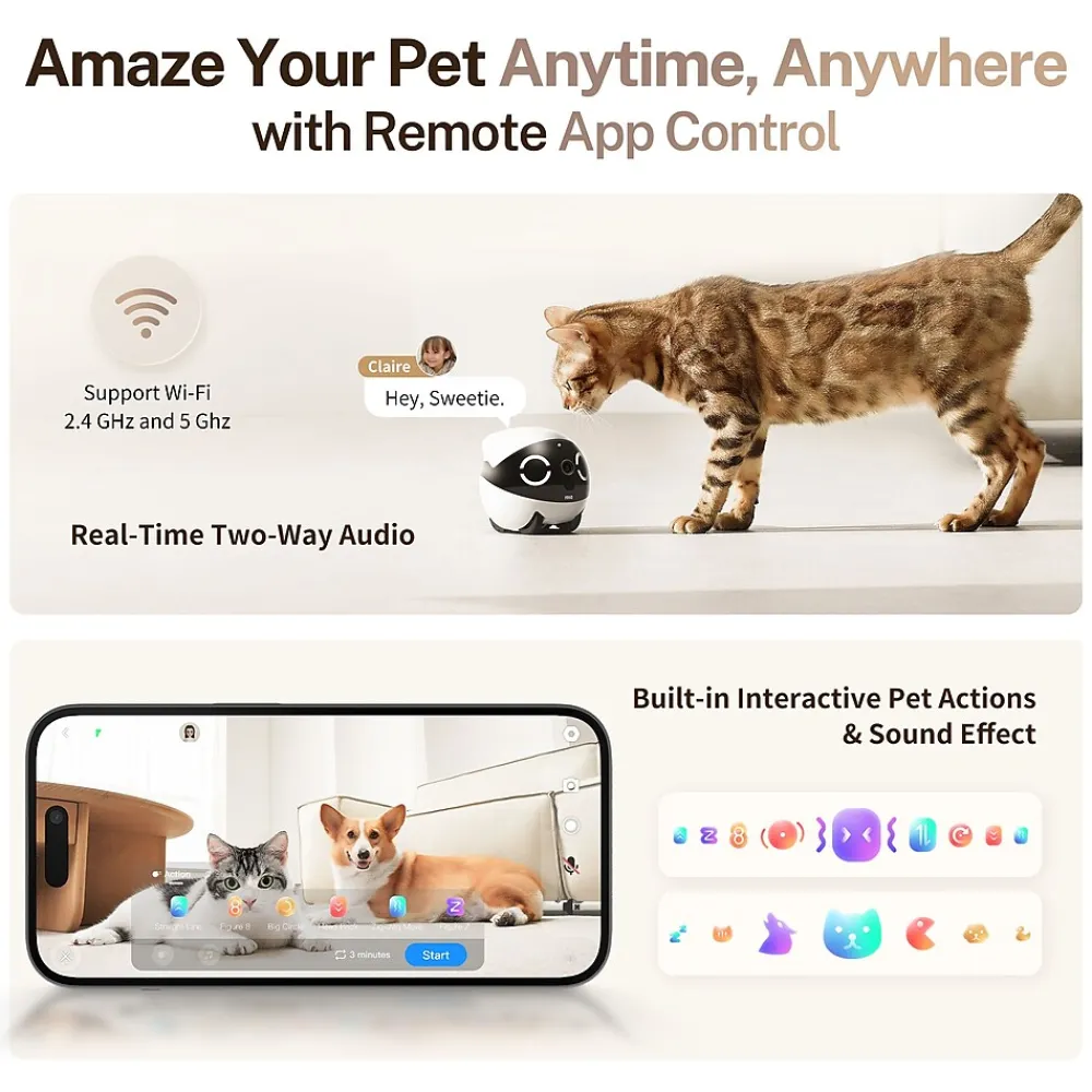 Movable Pet Camera with 2K Resolution: The pet camera indoor provides 2K ultra HD resolution. With freely movable design allows you to control the direction and speed of ROLA Mini movement via ROL APP and view your home anytime, anywhere without blind spot areas, supports 2.4G Wi-Fi and 5GHz. The home security camera is equipped with 4pcs invisible infrared lights, allowing for clear images even at night