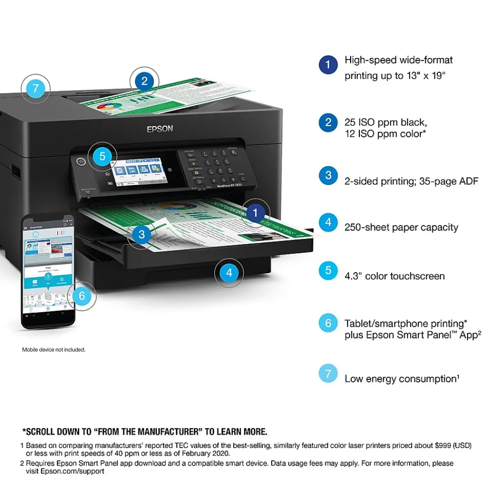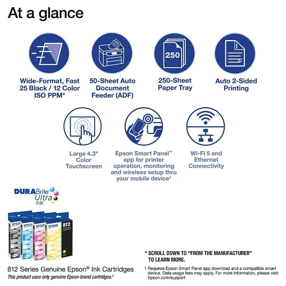 - Easy to use — 4.3″ color touchscreen for quick navigation and control, plus all-new Epson Smart Panel App for enhanced connectivity and productivity from your mobile device