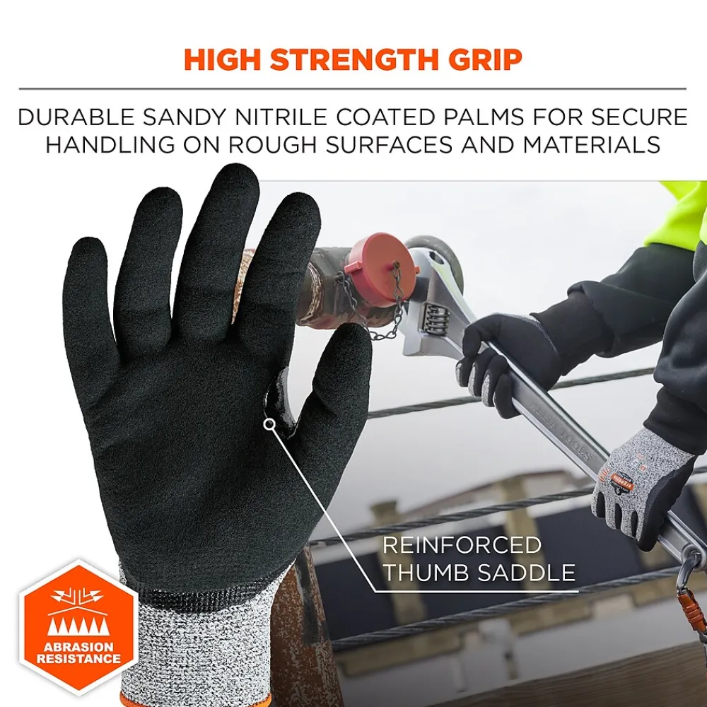 - HIGH STRENGTH GRIP – Durable sandy nitrile coated palms and thumbs for secure handling on rough surfaces and materials