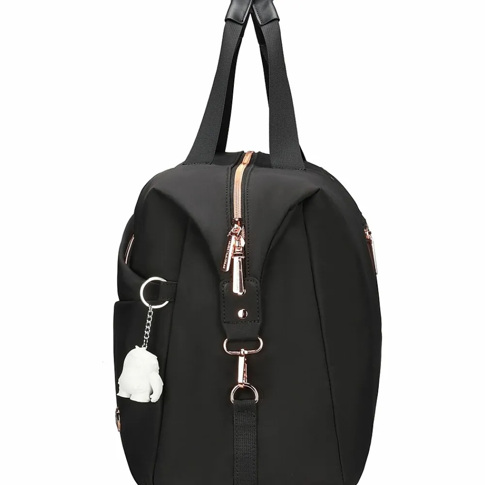 SD5527-01 KATY ROSE NG Black Duffle Bag, LED Light, USB Charging Port, Eco-friendly. Indulge in elegance with our fashionable designs, accentuated by enchanting rose golden zippers. Enhance your style effortlessly with our wide range of products, curated in trendy colors that make a difference.