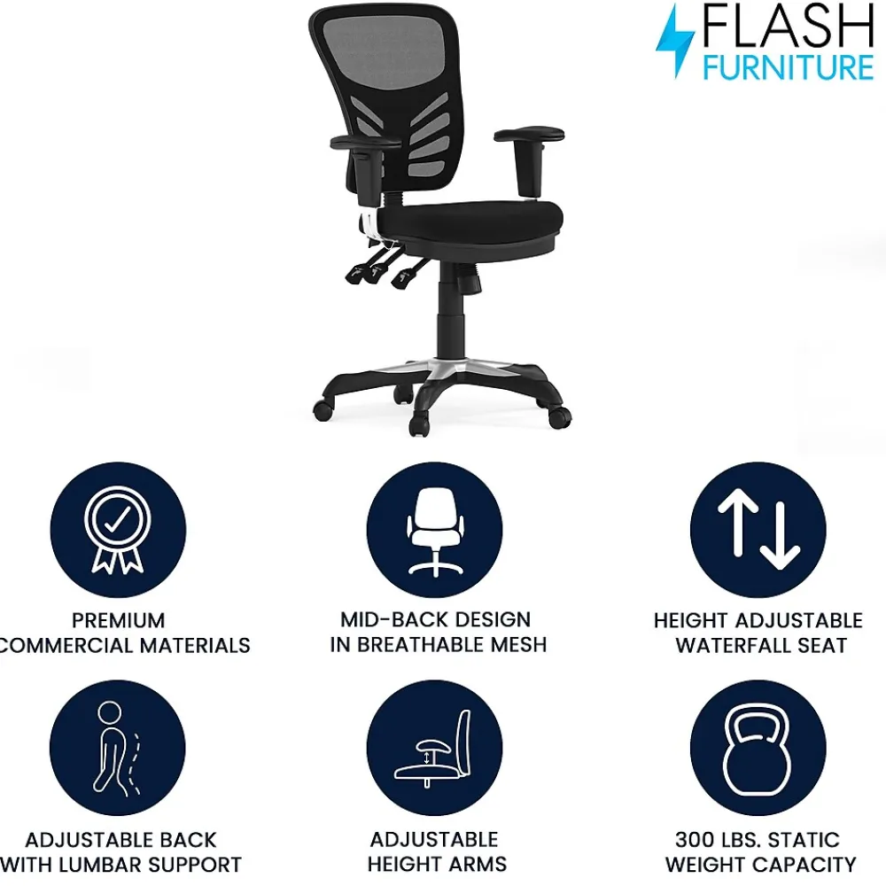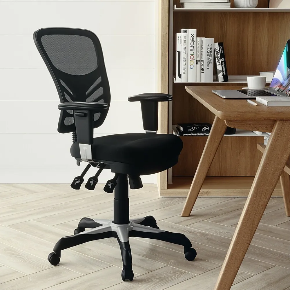 Get your work demands down to a minimum and produce your best work on this multifunctional swivel office chair. This chair comes fully loaded to help you take charge of your day. With a ventilated mesh back, you’ll have air circulating to your back giving you sweet relief during warm summer days. Make room for this modern beauty, upgrade everyone’s chair in the office, granting everyone the ability to have a customized seating experience. Standout features include: an adjustable back height knob; back angle paddle; tilt control paddle; curved back with substantial lumbar support; contour padded swivel seat; adjustable height arms provide relief to your neck and shoulders. Get a supportive ergonomic chair that can keep up with long 8 to 10 hour shifts with ease. This chair is so comfortable it can also be used as a gaming chair while you revel in an intense game against online players.