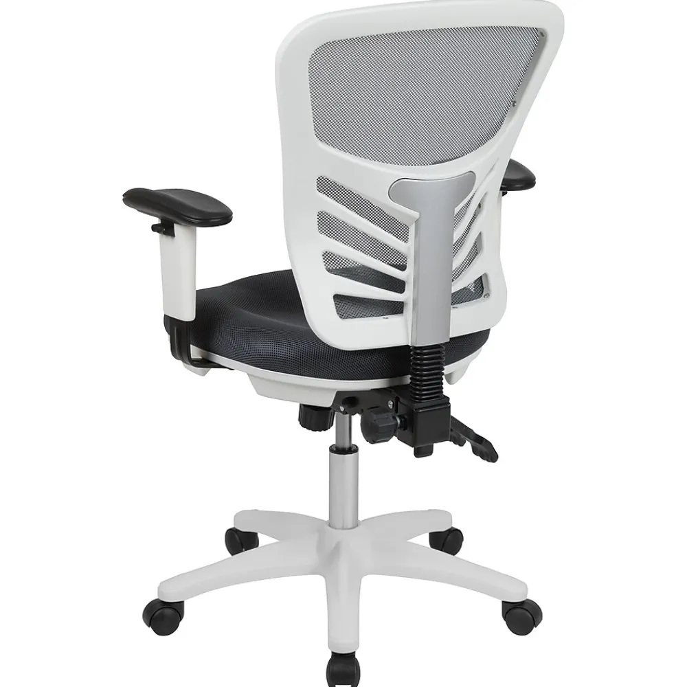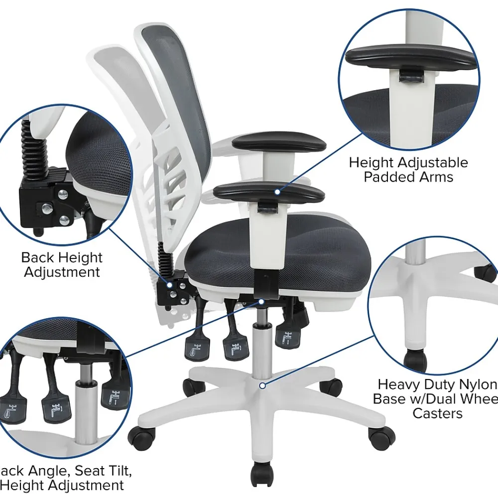 - Color: Dark Gray Mesh/White Frame; Material: Foam, Mesh, Metal, Plastic, Plywood, Polyester