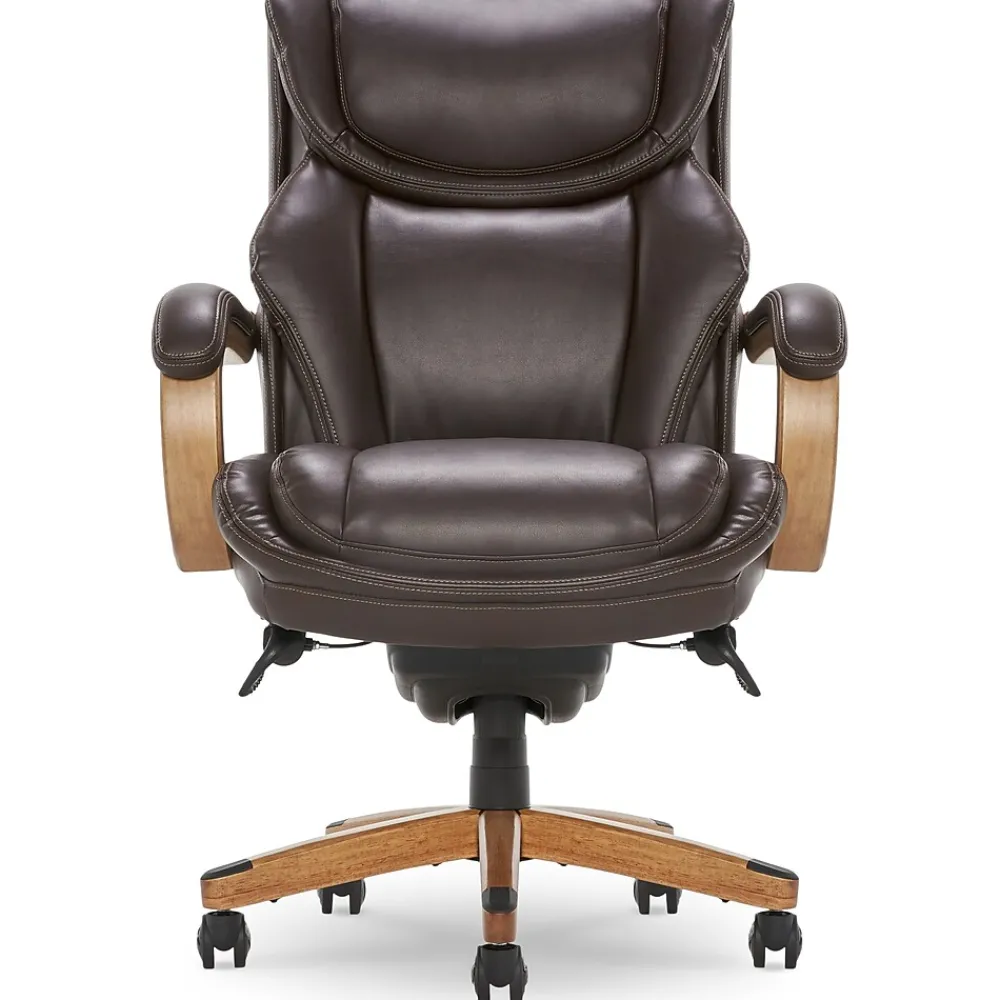 This La-Z-Boy Harnett executive office chair is designed for comfort by offering superior ergonomic features, with unique style. The chair uses ComfortCore, an advanced foam layering system that offers zone-based support through strategic cushion mapping. This executive office chair features soft support at the front of the cushion, firmer support at the back of the cushion, and poly fiber fill comfort top layer for supreme comfort.