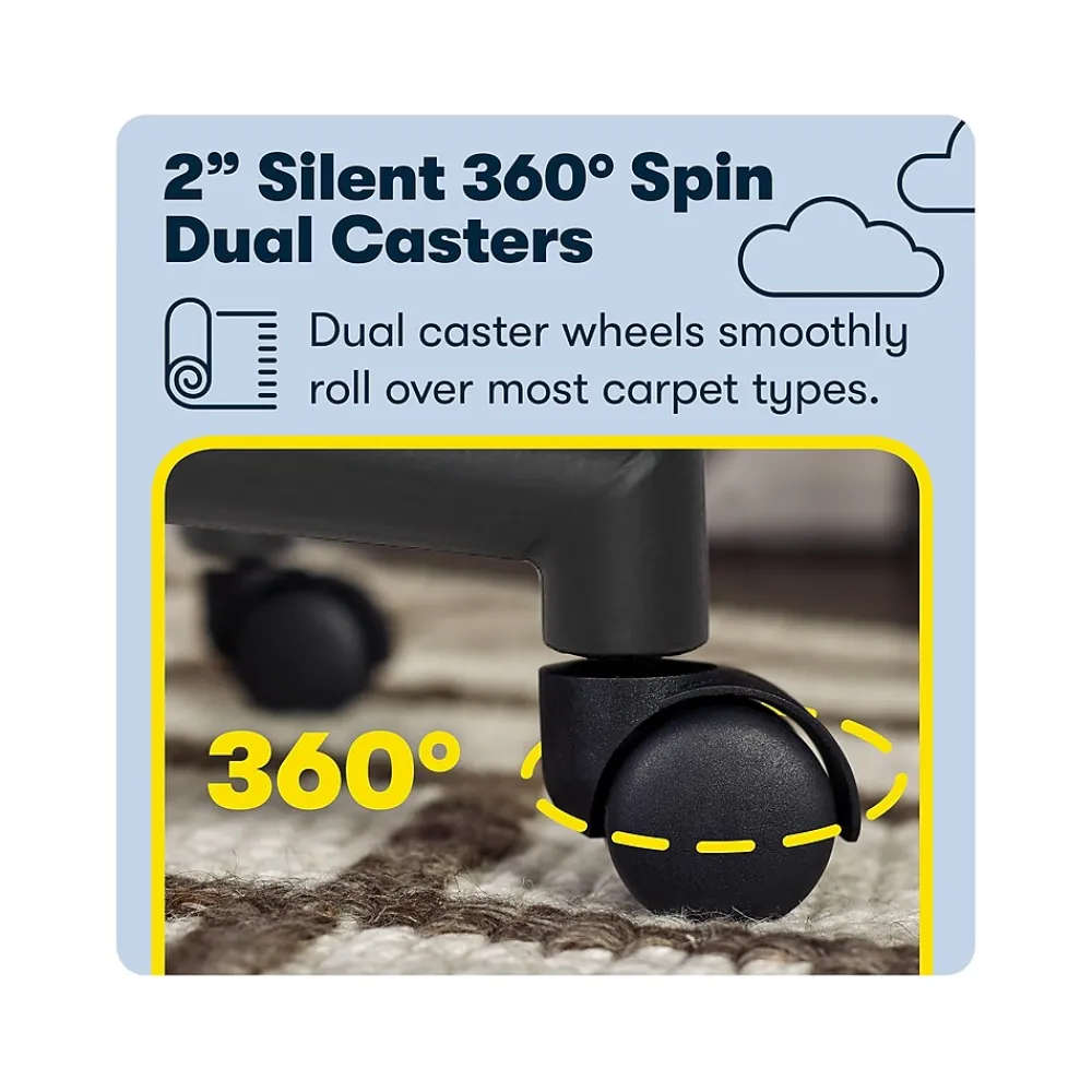 - Features a durable five-star base with heavy-duty dual-wheel casters that rotate easily and glide over most types of carpet