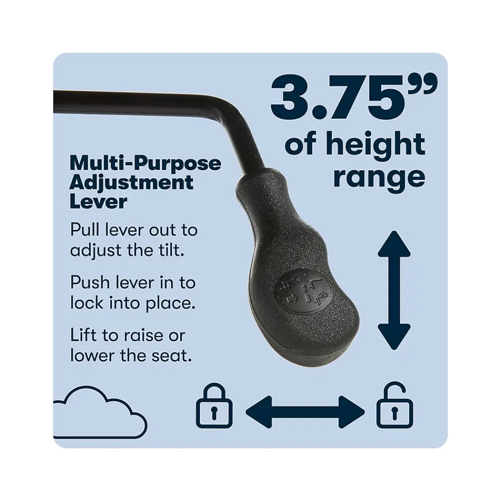 - Pneumatic seat height lift with adjustable tilt tension knob and recline lock-out features