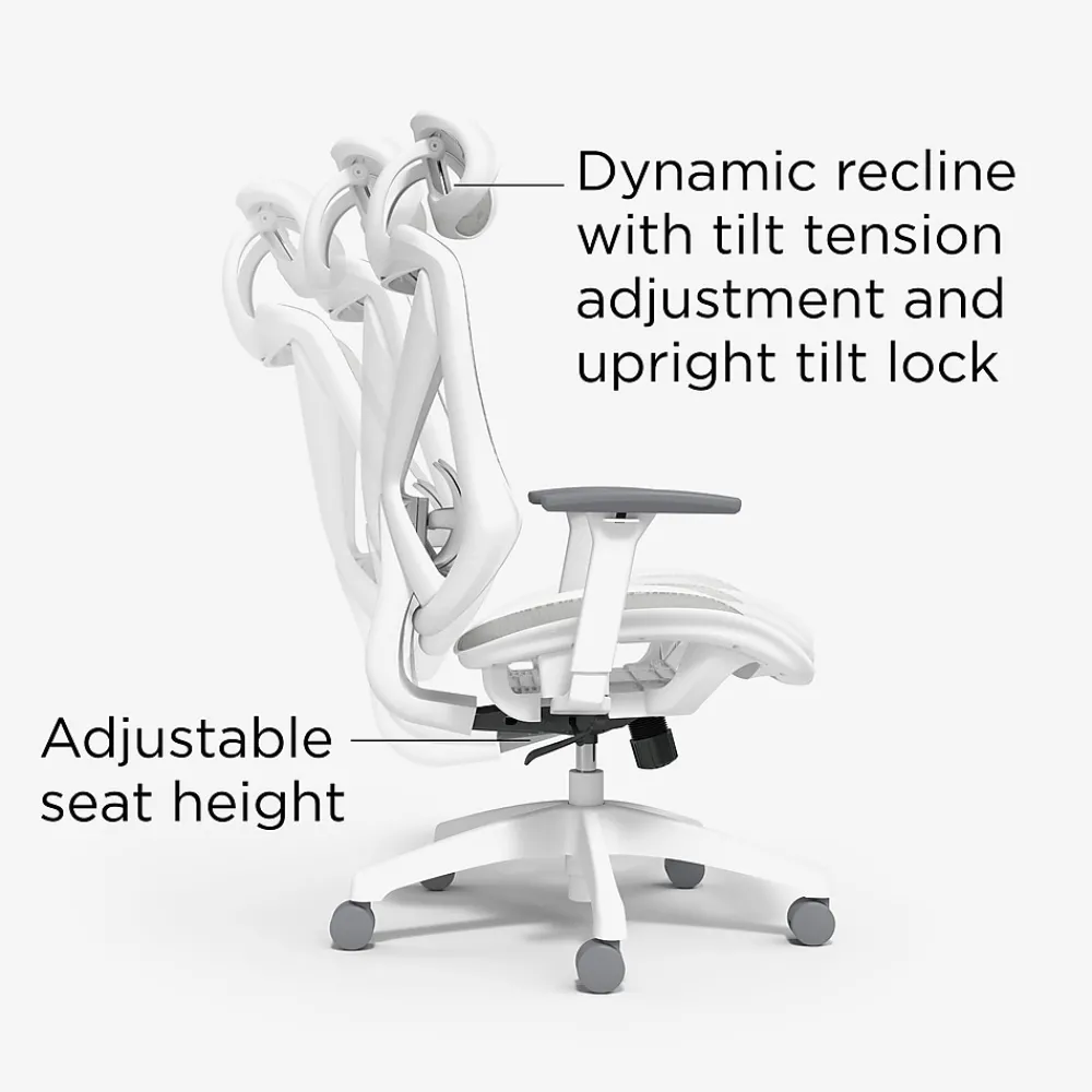Upgrade your workspace with the Staples Dexley Mesh Task Chair, designed for optimal comfort and functionality. Tailored to your body, its adjustable seat height and armrests ensure personalized support, while the adjustable lumbar support promotes proper posture. The synchro-tilt mechanism, upright tilt lock, and tension knob offer control over reclining resistance for focused productivity. With a stable five-star base and smooth casters, maneuvering around the office is effortless. Plus, its breathable mesh construction keeps you cool during long hours. Experience superior ergonomics with features like adjustable headrest, lumbar support, tilt tension, and tilt lock, enhancing your workspace comfort and efficiency. Get one of the best seats in the house for discerning professionals who demand excellence they can count on for years to come.