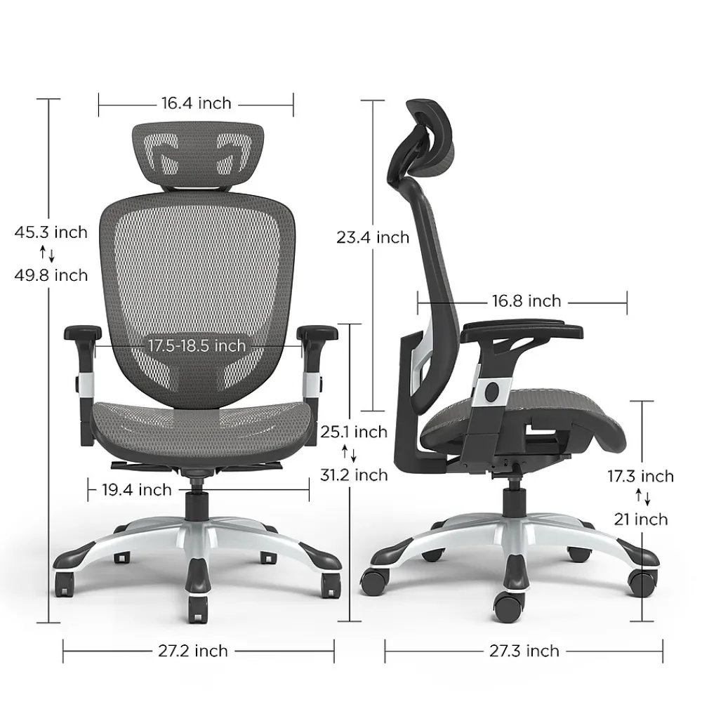 - Overall dimensions: 45.28-49.76″H x 27.1″W x 27.2″D ; Seat dimension: 17.24-20.98″H x 19.37″W x 16.77″D ; Back dimensions: 16.43″W x 23.43″D