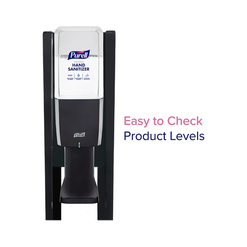 Show you care by providing Purell products where they’re needed most. The Purell ES10 dispenser floor stand with white automatic dispenser helps promote well-being with a freestanding design that can be placed nearly anywhere. It’s a perfect solution for high-traffic areas. The sturdy, low-profile baseplate is designed to maximize stability while being lightweight, allowing you to easily move it around and clean surrounding areas. The included Purell ES10 automatic dispenser provides an easy and convenient way to access America’s number one hand sanitizer brand. Each refill (sold separately) includes a fresh AA battery built in, so you never need to change or buy batteries.
