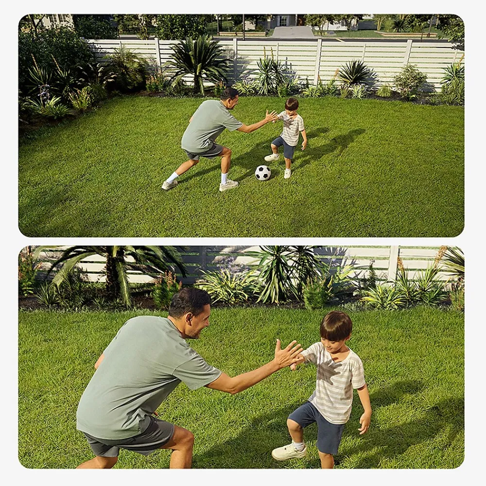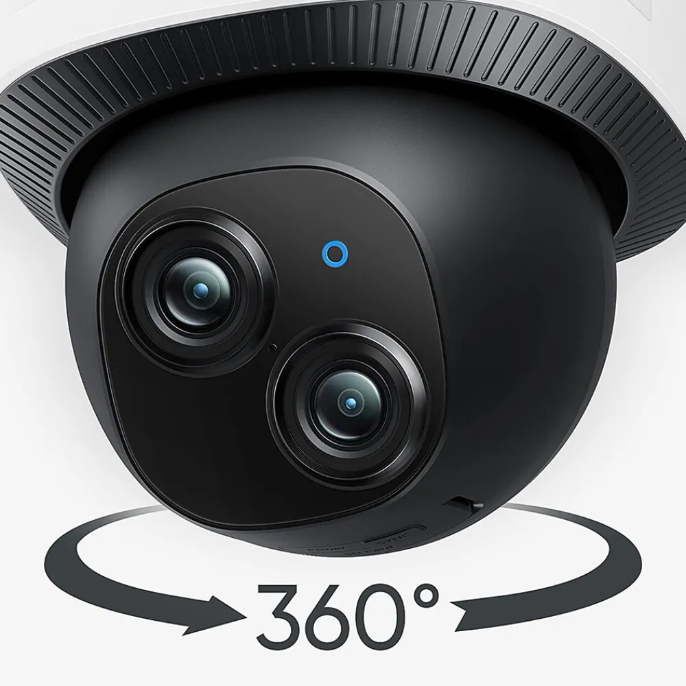 Pan 360° horizontally for a complete view. AI identifies people and tracks their movements. Auto-patrols on a schedule. Always on and always recording. Activities and people are monitored at all times. The telephoto camera captures details from up to 50 ft (15 m) away, while the wide-angle camera focuses on the big picture in 3K resolution. Dual cameras provide up to 8× digital zoom. Enjoy faster speeds and reliable connectivity with full support for dual-band Wi-Fi 6. Works with 2.4 GHz and 5 GHz networks.