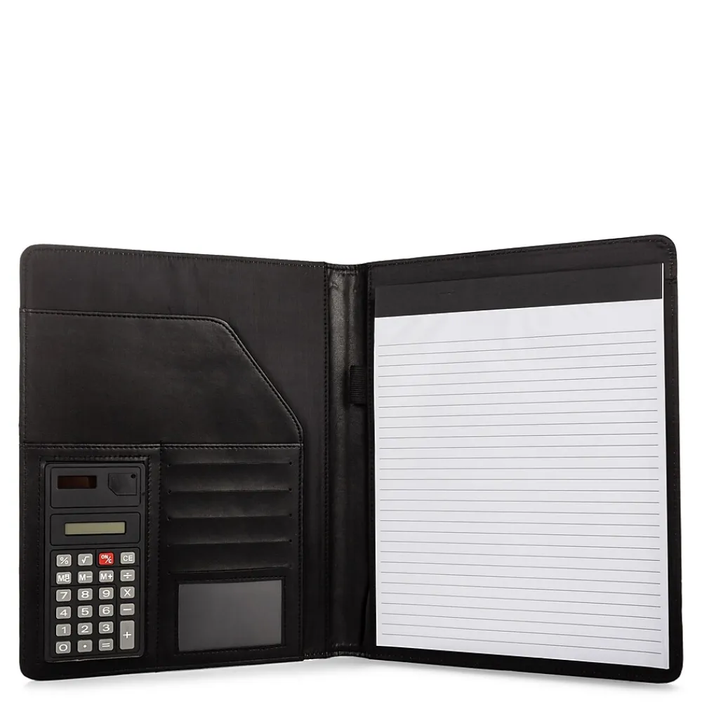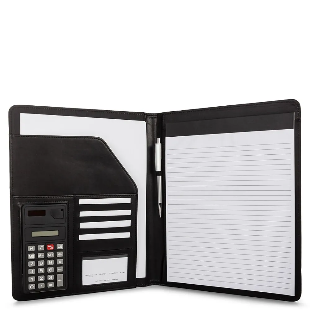 Bondstreet Padfolio made with vegan leather, comes with calculator, document pocket, standard note pad, ID window, six card slots and pen holder.