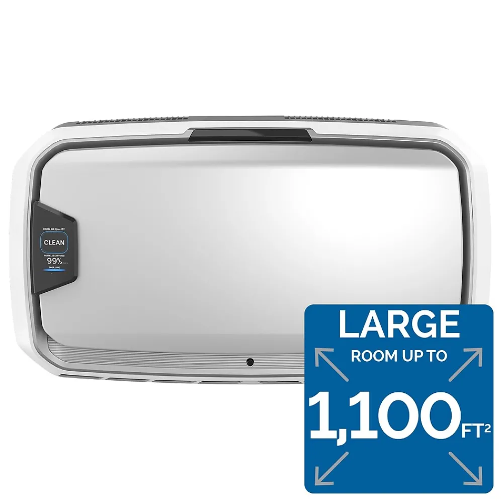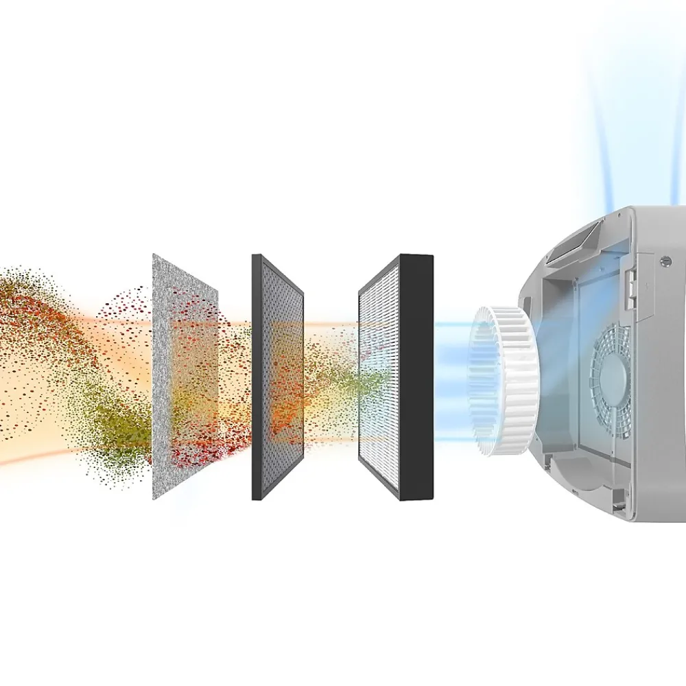 - 4-stage H13 True HEPA Filtration: Effectively removes at least 99.95% of particles as small as 0.1 microns, including allergens, such as pollen, dust, pet dander, and smoke in rooms 650–1100 square feet