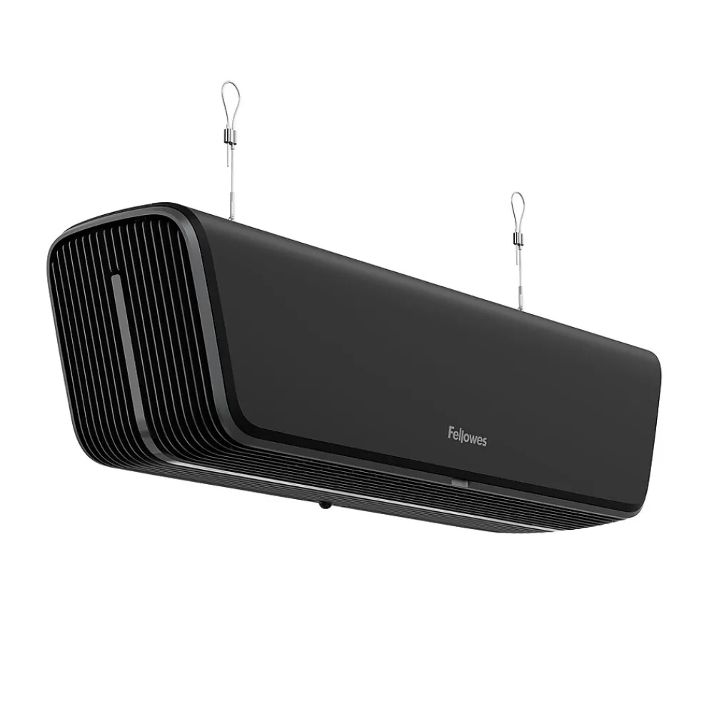 The Fellowes Array AC2 three-in-one filter (prefilter, carbon, and H13 True HEPA filtration) is 99.95% effective in capturing molecules as small as 0.1 microns, including viruses, allergens and germs, and is designed to last for 1 full year. This unit’s energy-efficient design includes a unique mixed-flow fan by Fellowes, designed to maximize air flow while delivering quiet operation. EnviroSmart+ technology includes a full suite of comfort and control sensors to continuously monitor contaminants, room occupancy, and noise levels to proactively respond to changes. This suite of indoor air quality (IAQ) sensors includes particulates (PM10, PM2.5), occupancy, temperature, humidity (rH), carbon dioxide (CO2), pressure, and TVOCs.