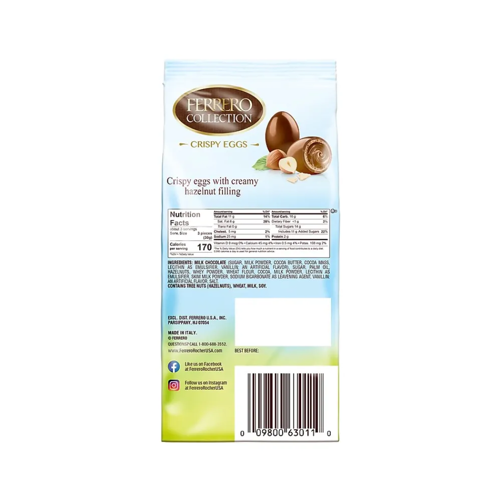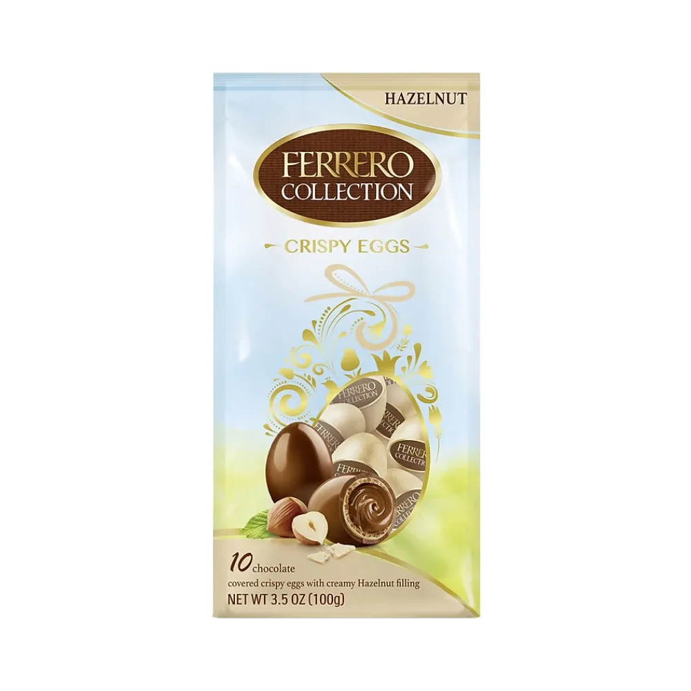 - Indulge in the crisp wafer and creamy hazelnut filling found in each chocolate-covered egg
