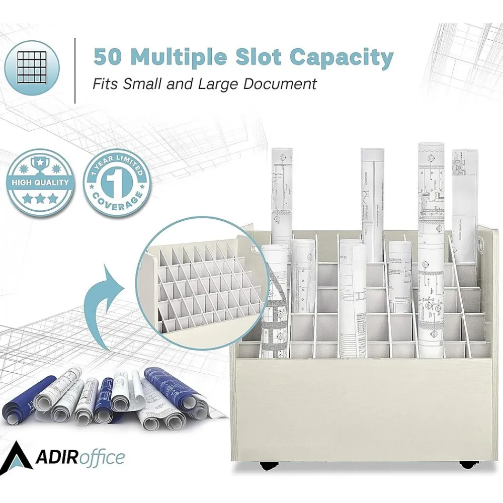 - AdirOffice Mobile Wood Blueprint Roll File is offered in tube slot option with 50 compartments to suit everyone’s storage needs