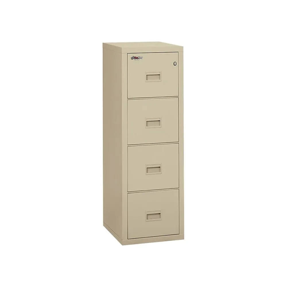 Store important paperwork in this FireKing vertical four-drawer fire-resistant file cabinet. The integrated lock prevents unauthorized access to sensitive documents, while the four spacious drawers maximize file storage space. A UL one-hour fire rating and water-resistant design defends your documents from damage during emergencies. This FireKing vertical four-drawer fire-resistant file cabinet boasts durable metal construction to withstand everyday wear and tear.