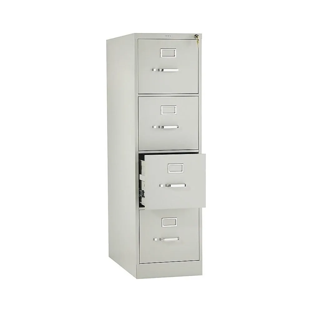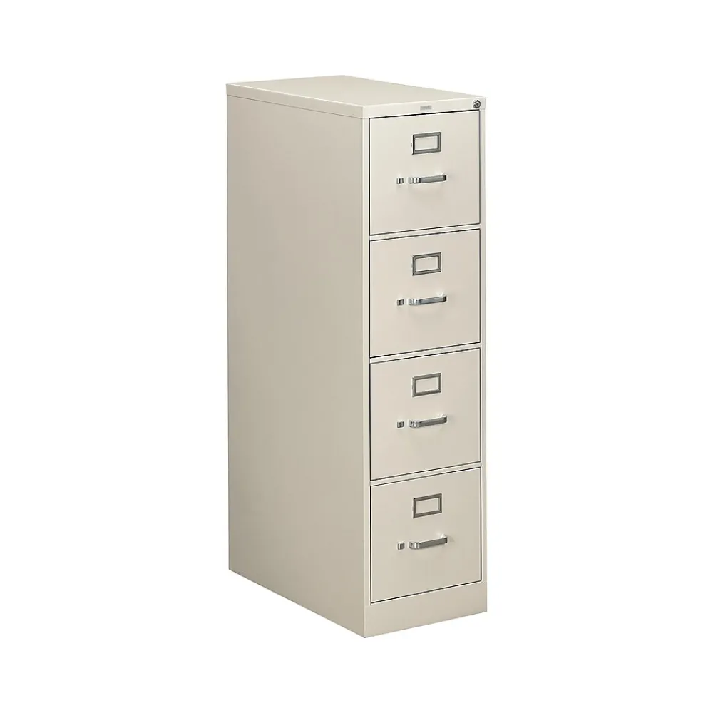 - Four-drawer vertical filing cabinet holds letter-size documents