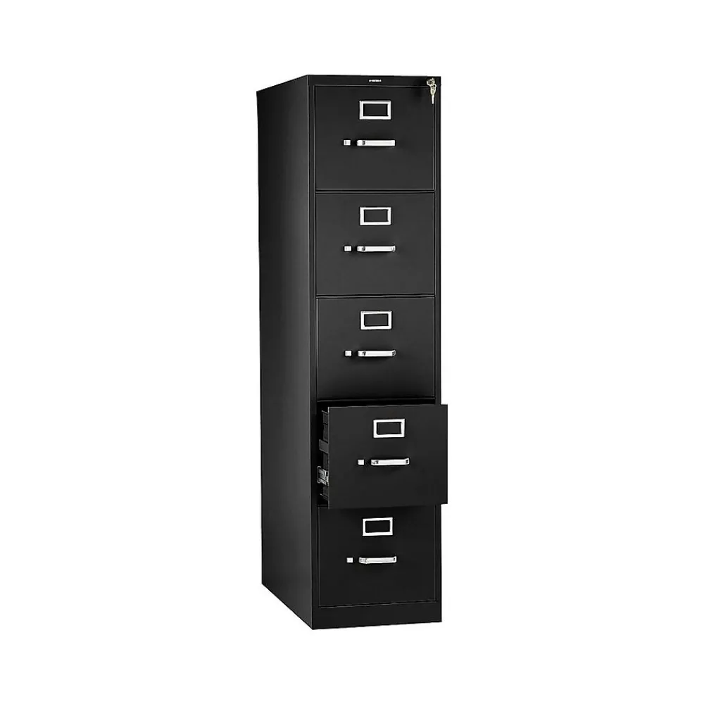 Hold essential records in this five-drawer filing cabinet. Each drawer has a thumb latch for secure closure and a steel ball bearing suspension system for a seamless glide and smooth access.