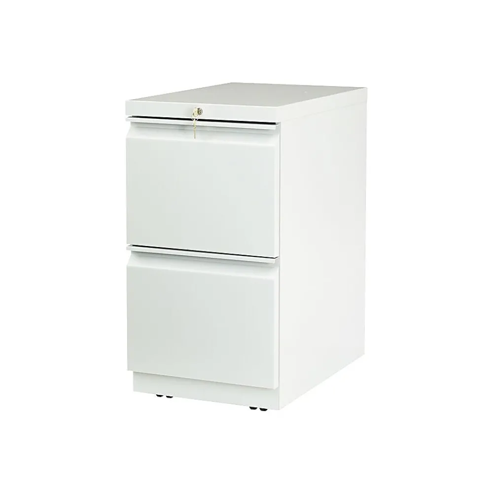 HONĀ® BrigadeĀ® mobile pedestal file cabinet offers a file drawer for storage of letter-sized documents and a box drawer for supplies, and it secures the contents with a lock. The file cabinet moves easily on its casters, facilitating movement to the location where you need it. Covered by a lifetime warranty, this piece features a steel construction that guarantees durability, and the gray color offers a neutral option that blends with most office decor.