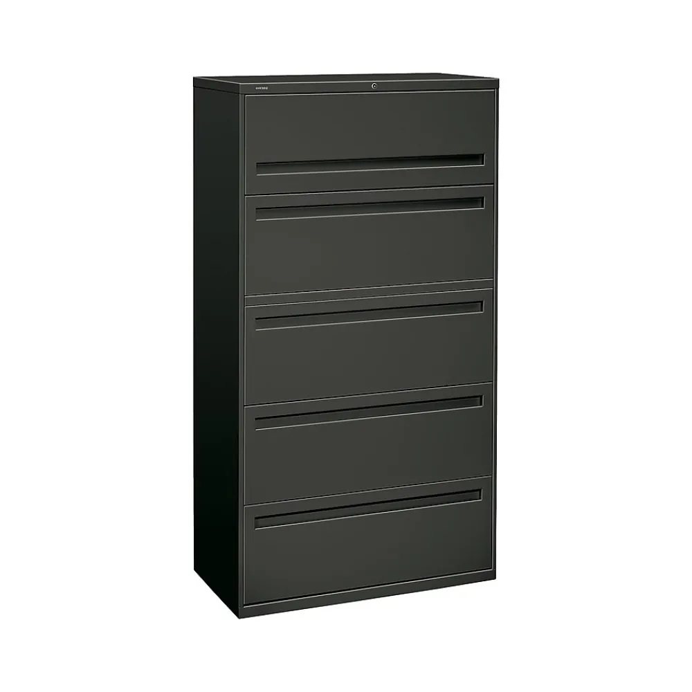 Devise a more sophisticated filing system with this HON Brigade 700 Series lateral file cabinet. Heavy-duty steel ball-bearing drawer suspensions keep each of the five drawers operating smoothly and quietly, while full-width recessed handles allow for easy opening. The removable lock core keeps files secure and lets you change out the locks whenever your office experiences turnover. This HON Brigade 700 Series lateral file cabinet offers a simple, low-profile look that blends perfectly with an array of office decor themes.