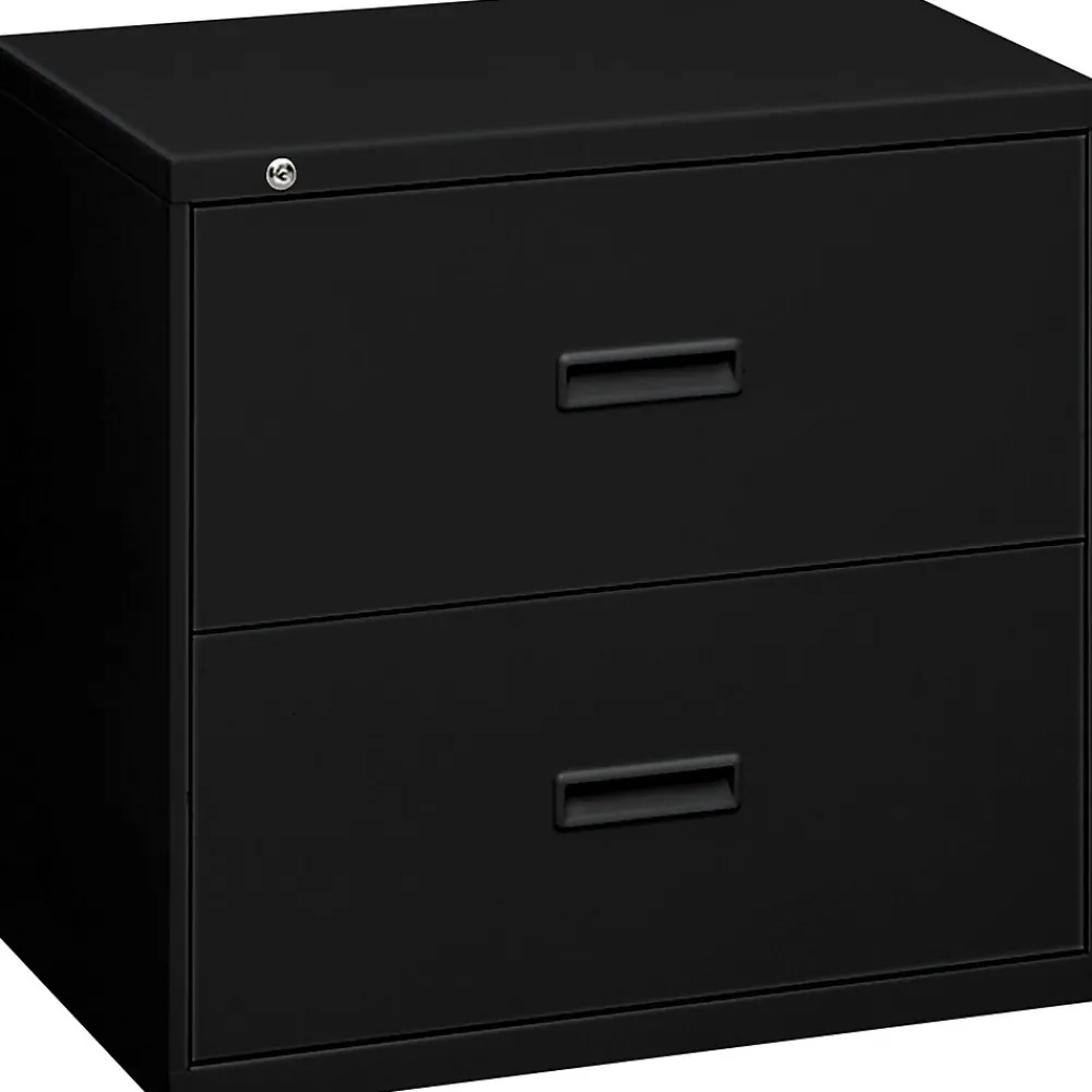 This two-drawer, 36″W model has a tamper-resistant enclosed base. Cabinet accepts letter or legal hanging file folders. Molded polymer handle is standard. Finish color is Black.