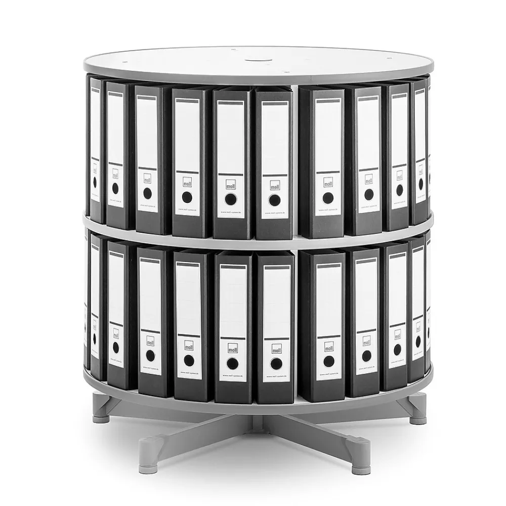 Moll® Two tier spin and file binder storage carousel can be accessorized with casters, organizer set and CD organizer. Carousel features slender 32″ diameter unit which offers abundant storage in a small area.