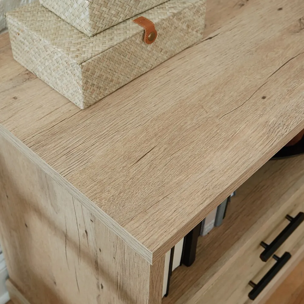 A multipurpose file credenza, like this one from the Mason Peak collection, allows the highest level of configurability and storage options to give you the office space you’ve always dreamed of. The top of this office storage credenza features a strong and lightweight 1″ panel constructionmeaning, it is perfect for your heavier office essentials while remaining easy to assemble and rearrange. A melamine surface makes the top of this office storage cabinet resistant to heat, stains, and scratches. This storage credenza features an adjustable shelf behind the door located on the right side. The adjustable shelf allows you to modify the file cabinet to accommodate items of various heights. Don’t forget the hanging files! A piece of commercial office furniture would not be complete without a file drawer with full extension slides that holds letter or legal-size hanging files. This keeps your documents organized and easy to locate. Finished in a Prime Oak and featuring attractive hardware, this resimercial file credenza adds an interesting look and optimal storage solutions to your office.