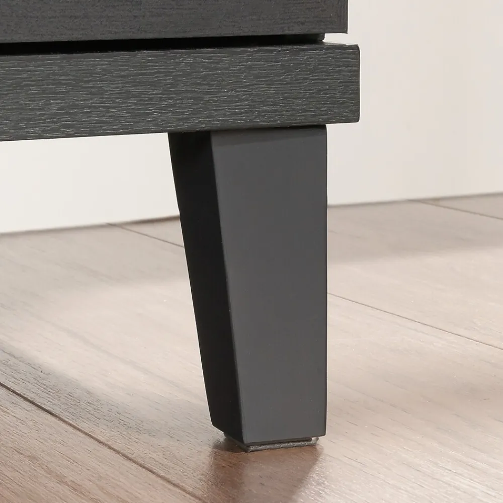 A traditional, yet modern addition to your home office is just a click away with this office filing cabinet from the Tiffin Line collection. This 2-drawer lateral file cabinet features large drawers with full extension slides that hold letter or legal-size hanging files. The drawer features a key lock for secure storage of your important documents. An interlocking mechanism allows only one drawer to open at a time for extra safety measures. Use the spacious top surface of this legal size filing cabinet to store and display items like a printer, wireless speaker, decorative plants, and photos of your family. Rattan inserts on the drawer fronts create a visually stunning centerpiece to any room. This lateral file cabinet is finished on all sides, so it will look polished from every angle. To ensure durability, it has impact resistant, high-grade thermoplastic edges and meets BIFMA testing standards. Finished in dark Raven Oak, this 2-drawer filing cabinet is a convenient and attractive storage solution for the home.