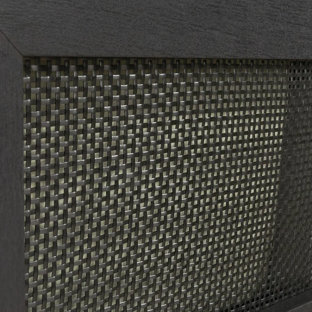 - Drawer fronts feature rattan insert for added style