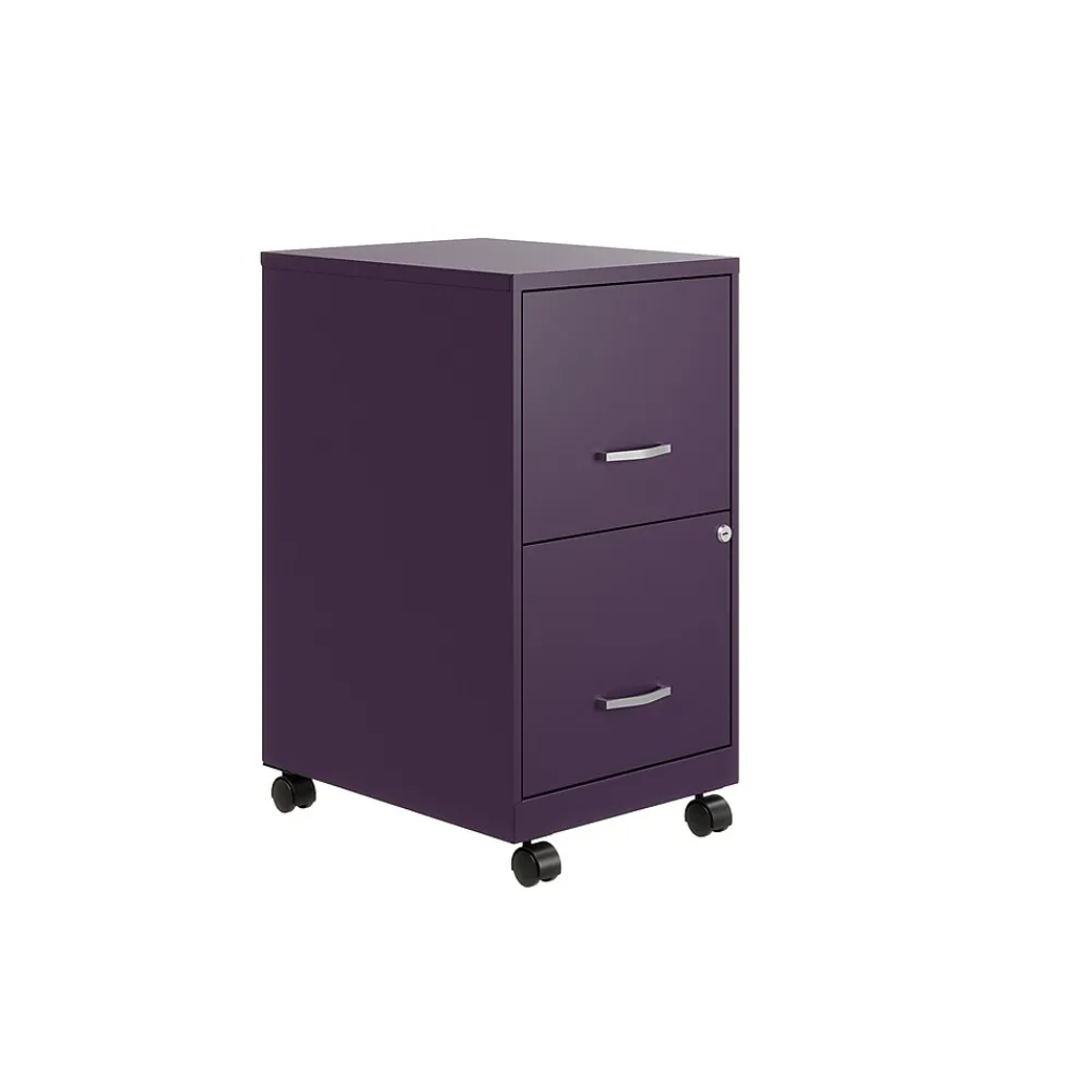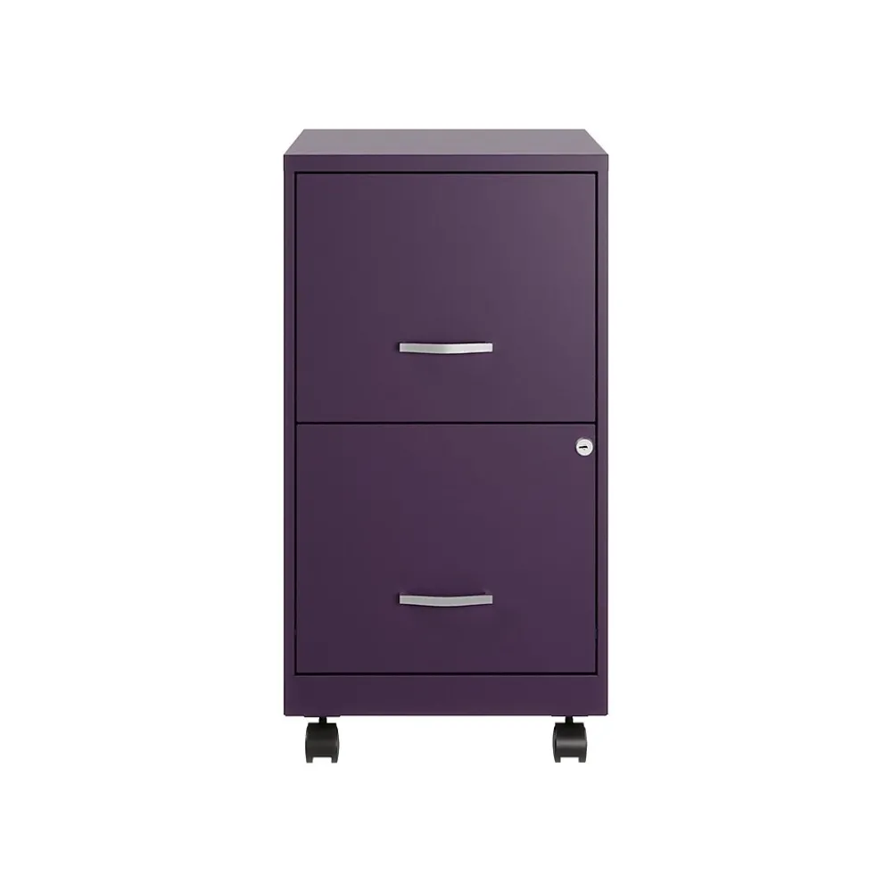 The Mobile Two Drawer Metal Vertical File Cabinet is designed for smaller professional offices or home office use. The cabinet features durable steel construction and a smart, efficient design that works well in small spaces, fitting easily under most work surfaces or office desks. Each drawer features high-sides to accommodate letter-sized hanging files. The drawers are also a perfect storage solution for other office essentials. Using a patented glide suspension, the drawer slides open and close smoothly with a three-quarter drawer extension to prevent tipping. In addition, you can keep your files and possessions secure with its locking drawers. The additional wheels that come with this file cabinet are both stylish and functional, which makes it easy to move around your home or office. The painted steel surface is non-porous and easy to clean. Bring storage and organization to your home or office with this stylish mobile two-drawer file cabinet. Your office supplies and files will always be organized and within reach.