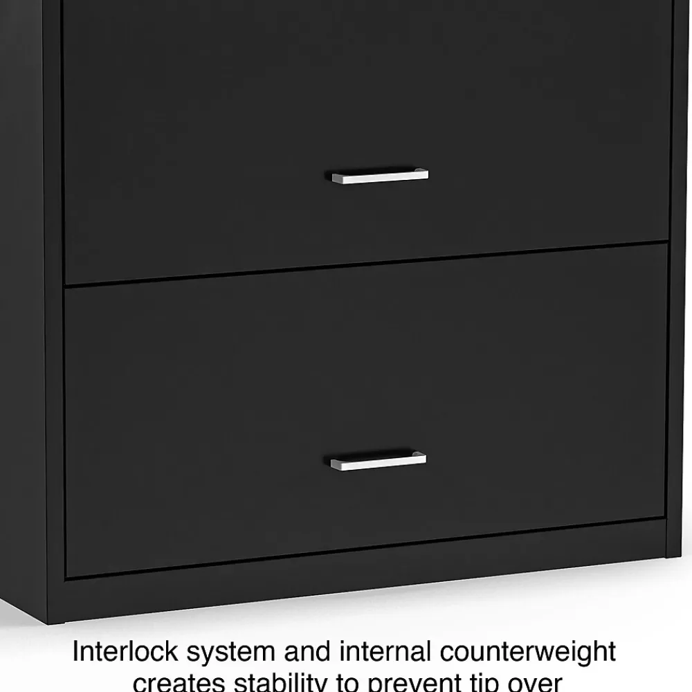 Expand your business filing system with this light duty lateral file cabinet. Two generously sized drawers offer ample space for organizing and storing paperwork, while the keyed lock keeps sensitive paperwork stored securely inside. The durable metal construction stands up to frequent use in your home office or smaller professional workspace. Each drawer accepts letter-size file folders, so you can store a wide range of documents in this black two-drawer file cabinet.