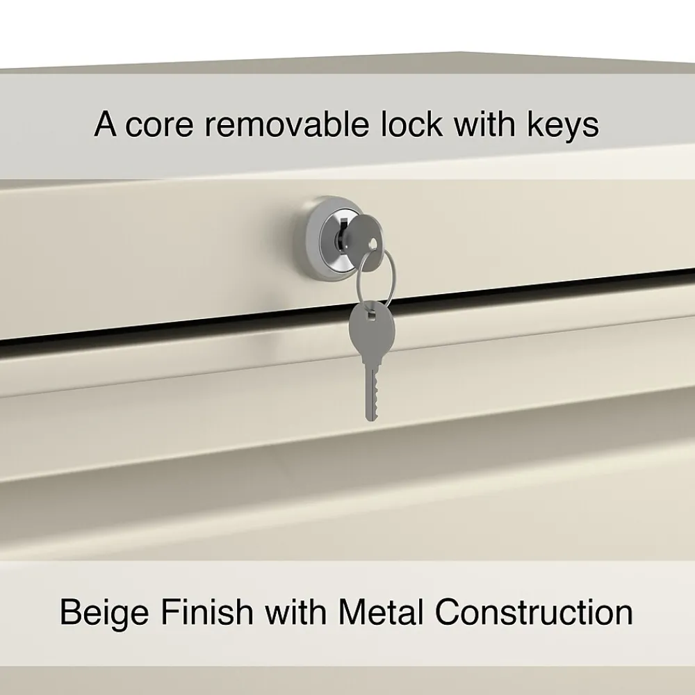Keep paperwork stored inside this lateral file cabinet. Two wide drawers accept legal and letter files, and the spacious top surface offers space for office electronics, binders or other frequently used items. The mechanical interlock system prevents both drawers from extending at the same time for added safety. Engage the core removable lock whenever you need to secure private or personal information. This two-drawer file cabinet boasts a baked-enamel finish and metal construction for added durability.