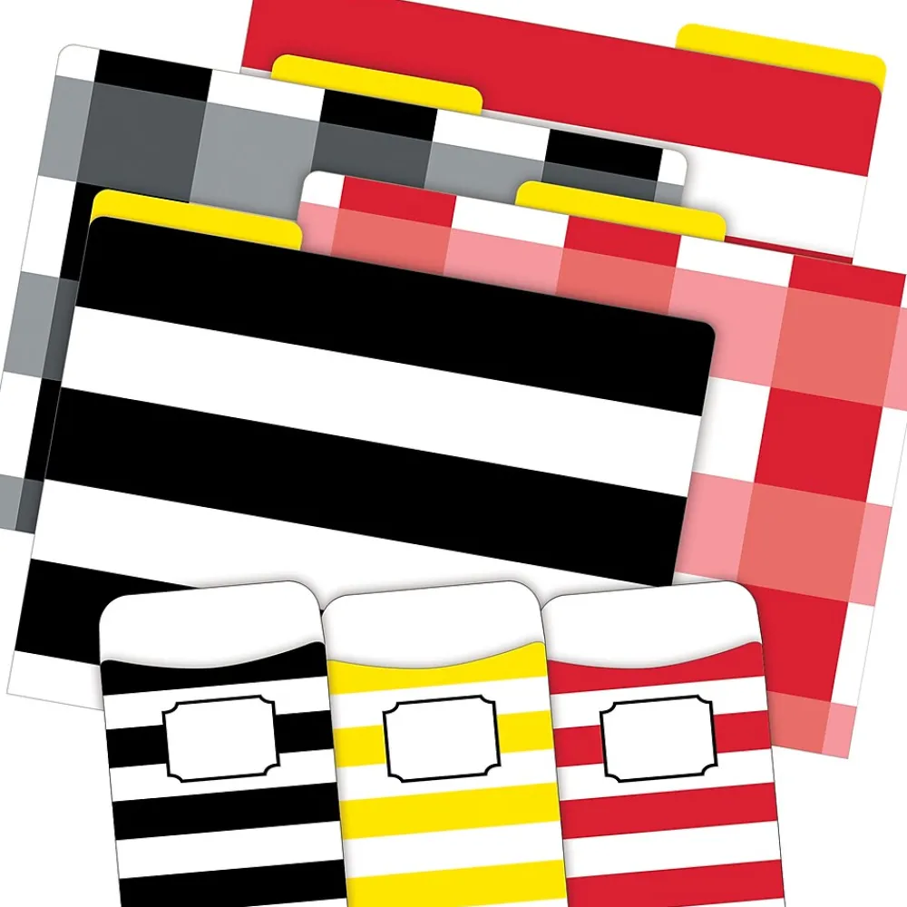 - Set includes 12 fashion file folders — 3 each of 4 designs and 30 peel & stick coordinating library pockets — 12 each of 3 designs.