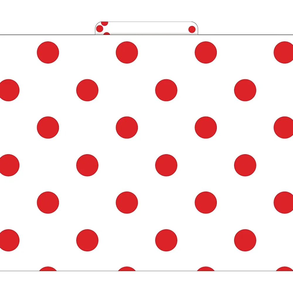 Barker Creek’s Red & White Dot Letter-Size File Folders are an affordable way to organize your office, classroom, or home with style and flair. This set of stylish desk accessories includes 36 file folders – nine each of four designs. The folders are 1/3 tabbed, which means that they have three tab positions – twelve folders are tabbed on the left, twelve folders are tabbed in the center, and twelve are tabbed on the right.The 14-point stock makes these folders perfect for desktop filing, meeting handouts, and student papers.These unique office supplies are fully reversible, each folder having a black & white dot design on one side and a different dot design on the reverse side. The possibilities are limited only by your imagination! Coordinating products are available. Search: Barker Creek Dots.