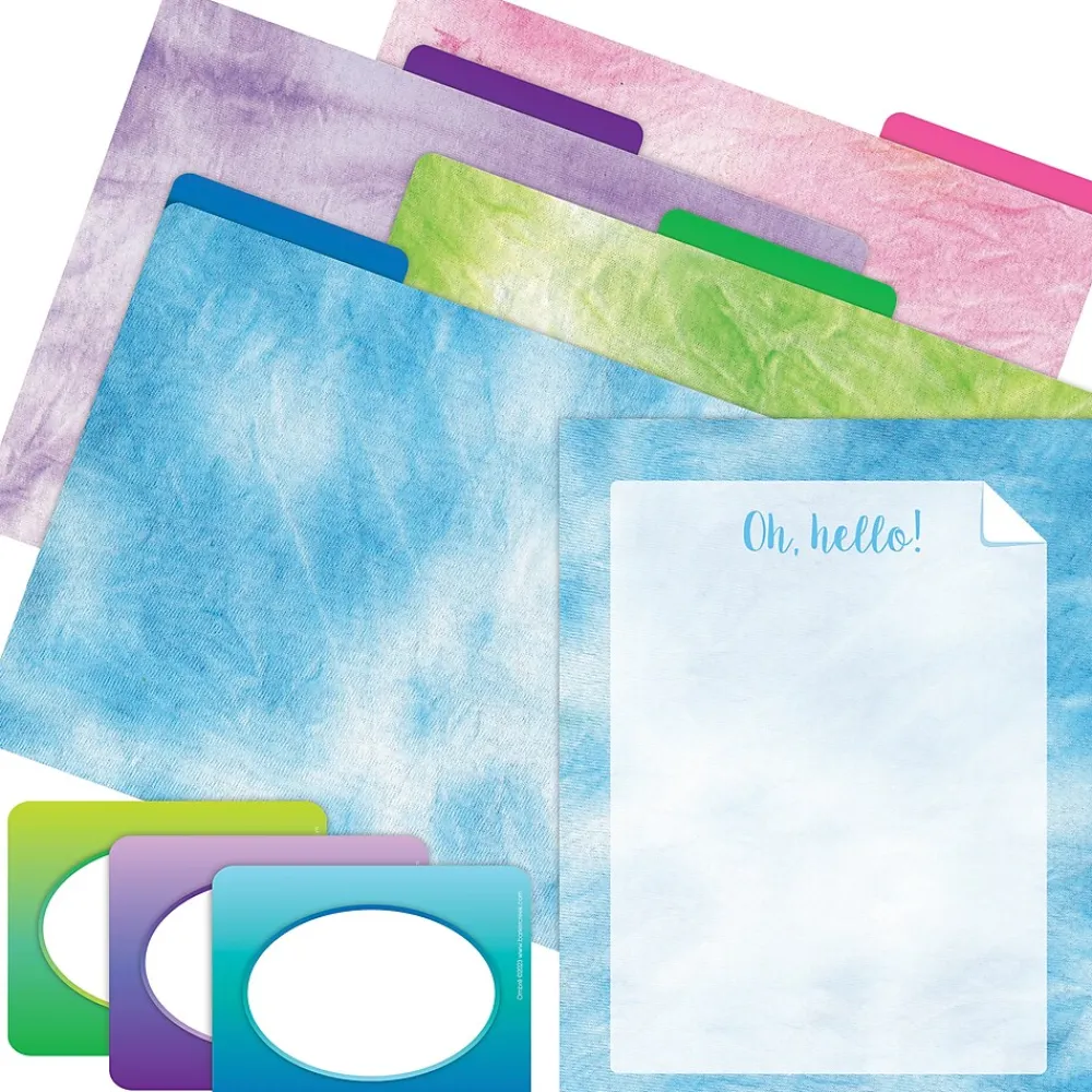 - Set includes 12 fashion file folders, 45 coordinating self-adhesive labels, and 50 sheets of coordinating computer paper.